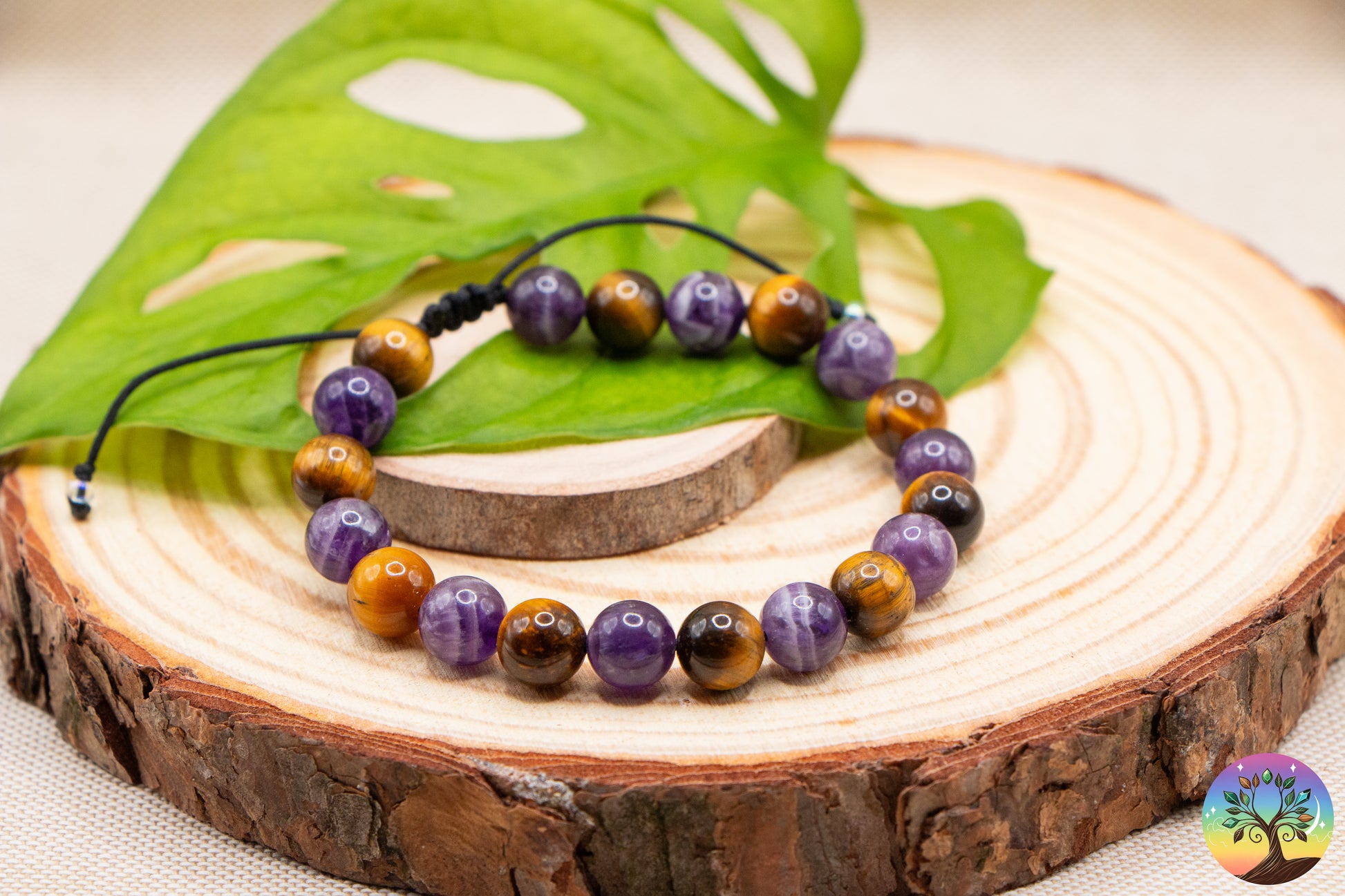 Œil de Tigre & Améthyste Rubanée - Bracelet 8 mm